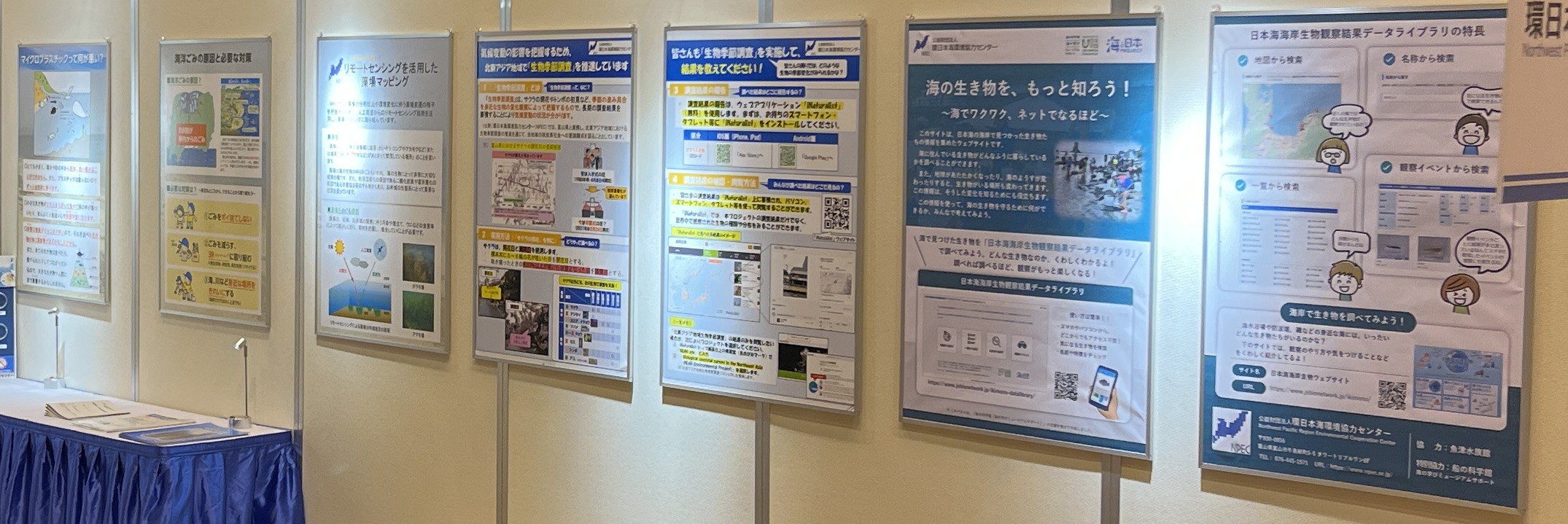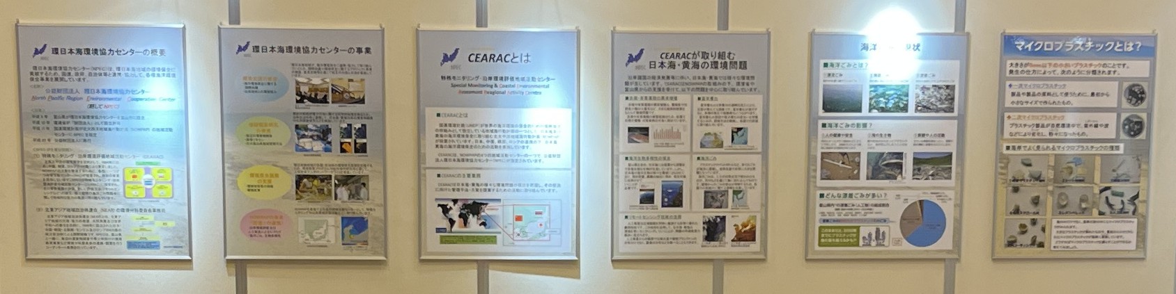 <パネル展示コーナー> ・海洋ごみ、マイクロプラスチック ・日本海海岸生物観察結果データライブラリ ・生物季節調査 ・NPEC・CEARACの事業 |